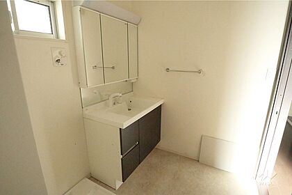 洗面室3面鏡・シンク下など収納がたっぷりあります、生活感を隠すことができます。