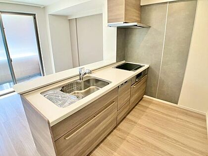 対面式キッチンは料理中でも家族やゲストとのコミュニケーションが取りやすく、開放感が魅力です。リビング全体を見渡せるため、子供の様子を確認しながら家事を進められる利便性も高いです。