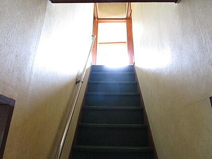 直線階段には手摺が付いています。折り返しではないので、大型荷物の上げ下げがしやすいです。