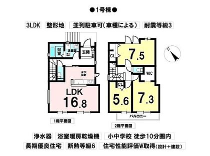 ■□1号棟□■<洋室1:7.3帖>南側洋室