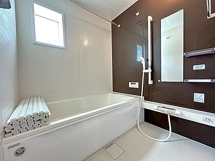 ■□1号棟□■シンプルで明るい雰囲気の浴室で、ほっと一息つける空間です。