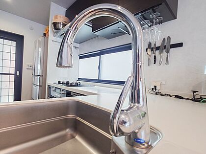 カウンターキッチンは広くて収納力もあるので、快適に料理をすることができます。食器や炊事用具を手の届くところに配置しやすいため調理もスピーディーですよ。