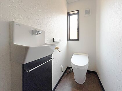 タンクレスと洗面台を採用。いつも清潔なスペースであってほしいのが毎日使うトイレです。