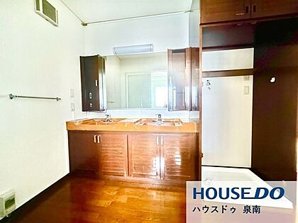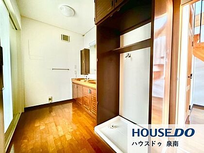 ”【洗面所】収納が充実しているので、化粧品や洗面道具といった小物をはじめ、洗剤のストックやお掃除道具などもまとめて収納することができます。電源が付属しているのでドライヤーなどを利用できます。”