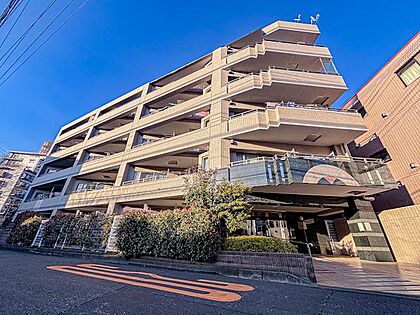 存在感のある外観が特徴のマンション。落ち着いたデザインとしっかりとした構造が安心感をもたらし、住まいとしての信頼性が感じられる美しい造りです。