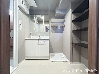 洗面所には、収納がありタオルなどを入れるスペースとして。