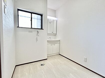 【リフォーム済】洗面化粧台は三面鏡タイプを採用しました。朝の支度がしやすく、見た目もすっきりします。