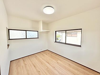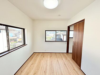【リフォーム済】2階東側約6畳和室 2面の窓からの明るい日差しが入ってきます。
