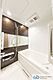 おしゃれな洗面スペース。洗濯機置き場と一緒になっているので脱衣の際もすぐにバスルームへご移動いただけます。