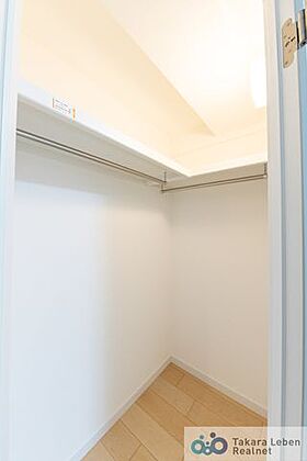 豊富な収納力のウォークインクローゼット。衣類だけではなく、スーツケースや小物類なども収納できるので、お部屋をすっきり片づけられます。