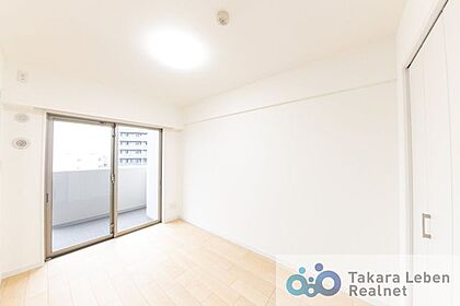約5帖の洋室には大容量収納があります。また、バルコニーにも面しているため、布団を干すのにも便利で主寝室にもおすすめです。