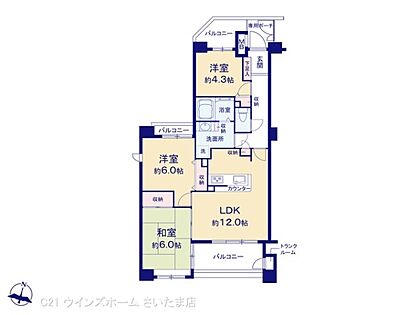 南、西、北の3方角部屋!バルコニー3か所で開放感があります!