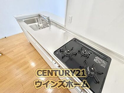 作業スペースが広く料理のしやすいキッチン!コンロは3口ついているので、おかずを同時に調理できます!