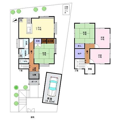 周囲には整然とした住宅が並び落ち着いた雰囲気が感じられます。前面道路は広めで車の出し入れもスムーズに行えそうです。