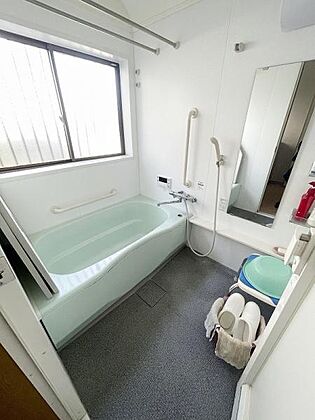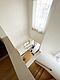 自然光が差し込む快適なバスルームです。シンプルで清潔感あふれる空間が広がっています。窓付きのバスルームは換気も容易で快適な入浴時間を提供します。
