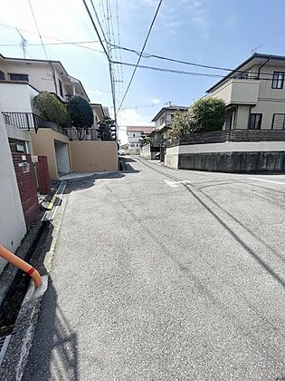 静かな住宅街の中にある前面道路で地域の暮らしやすさを感じられます。舗装された道が続いており車の通行にも適しています。