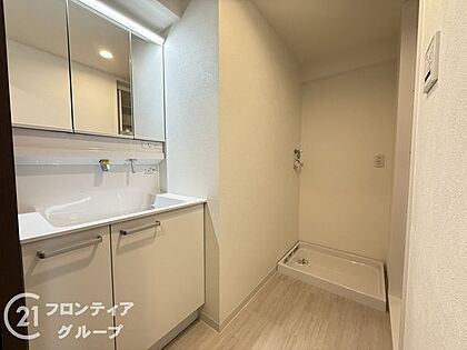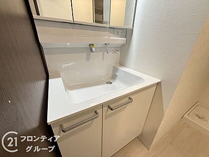 清潔感あふれるデザインの洗面台は、広々としたスペースで毎日の身支度が快適に行え、使い勝手がとても良いです!
