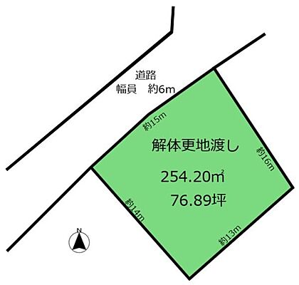 | 土地面積/坪(坪単価) | 254.20m2(登記簿)/77.03坪(16.90万円) | 代表的な接道 | 一方 公道 北西 6m ※詳細は備考欄をご確認ください |