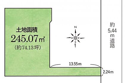 | 土地面積/坪(坪単価) | 245.07m2/74.26坪(103.40万円) | 代表的な接道 | 一方 公道 東 5.4m ※詳細は備考欄をご確認ください |