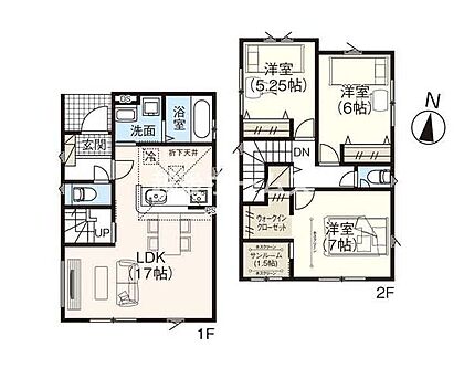 全室にクローゼット完備、収納が豊富で使いやすい間取りになっています