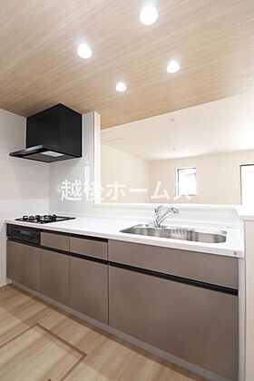 キッチンは使いやすいシステムキッチンです。食洗機や浄水器一体型の水栓も標準装備しています。