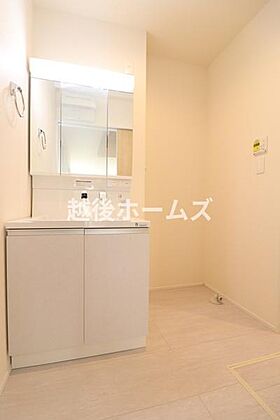 3面鏡のシャンプードレッサーは収納充実!朝のお支度も楽々できますね。