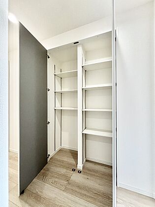 廊下収納。掃除用具や日用品のストックなどをすっきり収納。