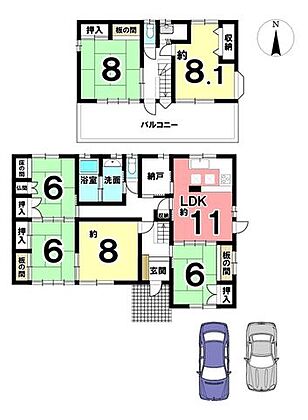 土地69.9坪、6LDK+納戸の大型住宅。南側道路に面した光あふれる物件です。