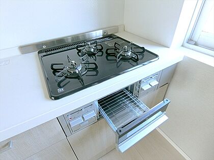 お料理も効率的に行える3口ガスコンロ。耐久性に優れたホーロートップはお掃除も簡単に行えます。