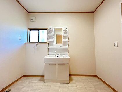洗面所の写真です。洗面台は新品のものに交換しました。