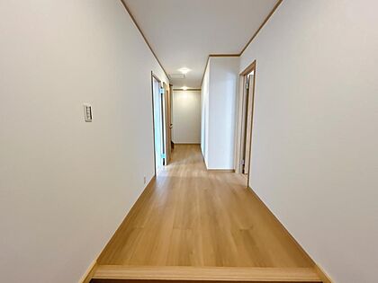 廊下部分を撮影しました。壁天井のクロス張替えを行い、フローリング仕上げになりました。