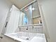 「清潔な印象の洗面室」明るく清潔感のある色調で纏められた洗面室は、機能性に富んだ三面鏡と使い勝手の良い収納を完備した洗面台を設置。洗濯機置場も完備し、大変充実しております。