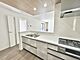 リビングにいる家族の顔が見渡せるカウンターキッチン。お料理もより一層おいしく、楽しく。食器棚を背面に設置しても十分な広さを確保しています。