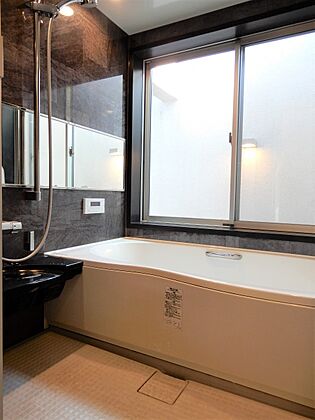 バルコニーに面した大きな窓がある、開放的な浴室です!陽当たりが良く通風良好です!