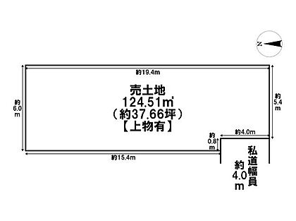 土地面積/坪(坪単価) 124.51m2(登記簿)/37.73坪(20.70万円) 代表的な接道 私道 西 4m