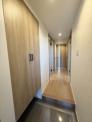 フルシーズンの靴を収納できるトールタイプの下足入を設置しました。玄関まわりをスッキリと演出する豊富な収納力です!