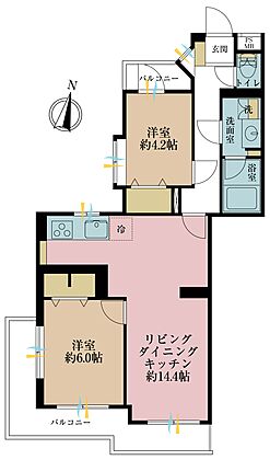 2LDK、専有面積59.36平米、バルコニー面積12.22平米