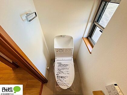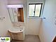 洗面室に小窓があり、カビ予防にも。大きな鏡で見やすい洗面化粧台です