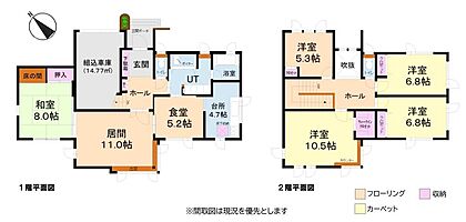●2世帯同居も可能な1階8帖間(和室)を設けた5LDK●ワークスペースや書棚スペースなど多目的に活用可能なゆとりの2階ホール●開放感のある吹抜の玄関ホール