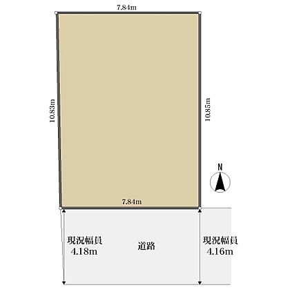 | 土地面積/坪(坪単価) | 84.00m2(登記簿)/25.45坪(38.50万円) | 代表的な接道 | 一方 ※詳細は備考欄をご確認ください |