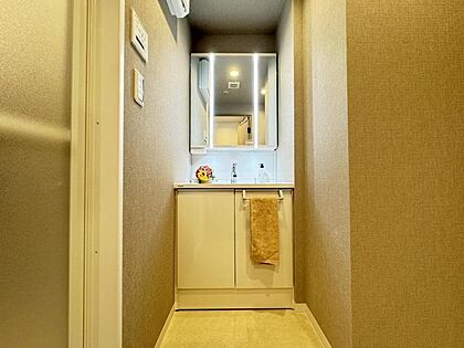 たっぷりの収納を設けたシャワー付洗面台で快適な暮らし