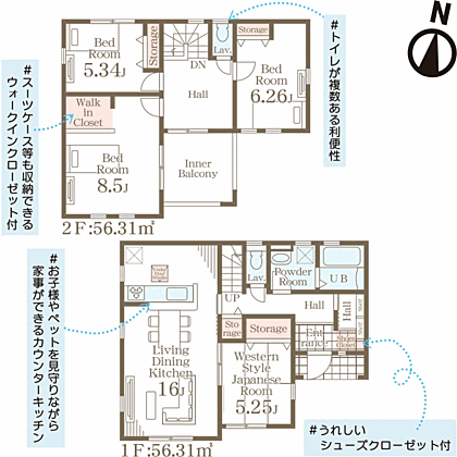 物件には、様々な収納スペースがあります。玄関にはシューズボックス。 キッチンには、床下収納。 和室には、押入れ。 洋室3室には、クローゼットがあります。間取りによっては、ウォークインクローゼッ