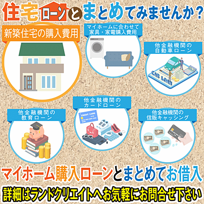 フリーローンや自動車ローン等、既存の借入があって、住宅ローンを組めないと思っている方いませんか?弊社では、既存の借入も一緒にまとめて住宅ローンを取り扱う銀行等も紹介させて頂いております。既存借入れ部分