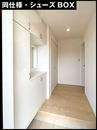 玄関脇には、天井までのシューズBOXが備わっております。 仕様によっては、120センチ幅・90センチ幅のシューズBOXが完備されております。