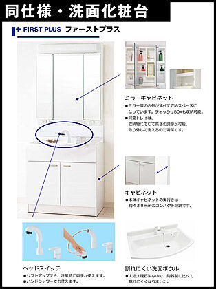 使い勝手が良い洗面化粧台洗面ボウルは、18リットルという大容量で、お洗濯にも使用できます。 さらに水アカの原因となる水溜まりが出来にくい構造になっているので、お手入れの手間も省けます。