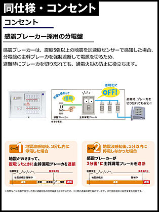 漏電時や地震が起きた際に、自動で遮断するブレーカーが備わっておりますので、万が一の災害時にでも通電火災の防止に役立ちます。