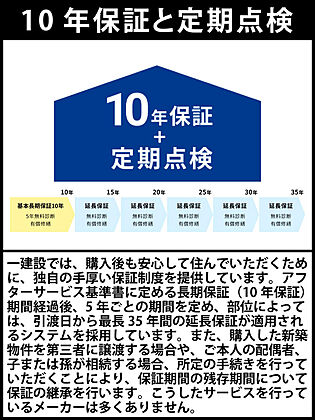 一建設では、購入後も安心して住んでいただくために、独自の手厚い保証制度を提供しています。