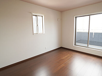 【洋室】窓からの陽光を活かす、白を基調とした明るい洋室。子ども部屋やリビングのアクセントクロス、コンセントや窓の位置等、細かい部分も自由自在です。(建物面積100m2、建物価格1770万円)