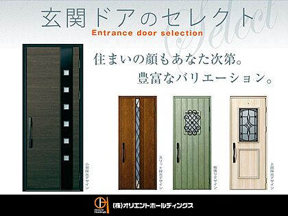 【玄関ドアのセレクト】毎日自然と目に映り、住まいの顔となる玄関ドア。シンプルモダンな小窓採光デザイン、足元まで光が届くスリット採光デザインなど、4種類の中からお好みに合わせてお選びください。
