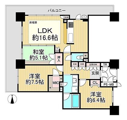 | 間取り | 3LDK | 専有面積 | 81.51m2(壁芯) |